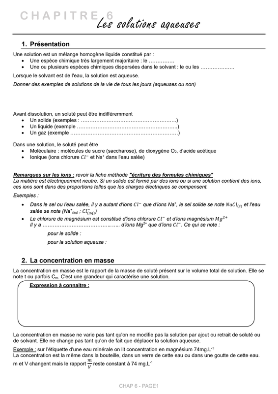 Chap 6 Solutions aqueuses