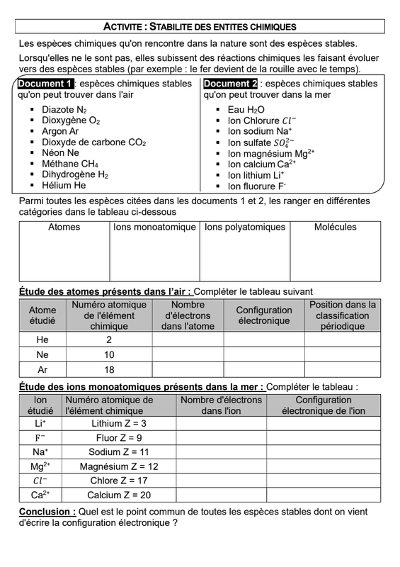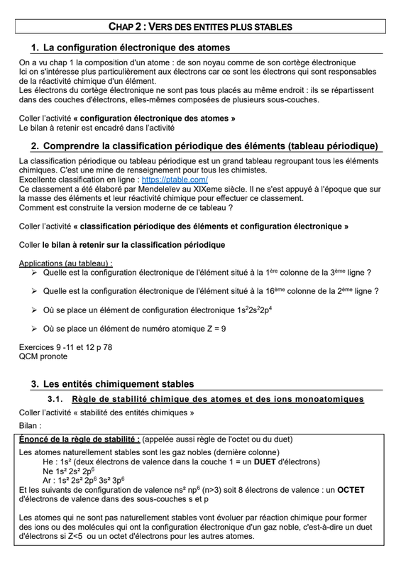 2022 Cours Élèves Chap 2 Stabilité Des Entités Chimiques