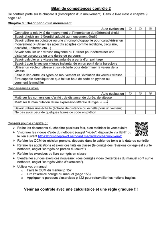 Bilan Contrôle 2 (Méca Les Mouvements)