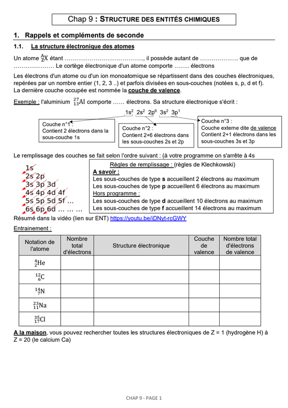 Chap 9 : Structure des entités chimiques